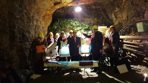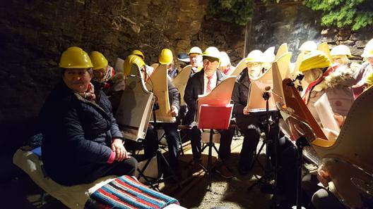 Für den Konzertort „unter Tage“ passend warm angezogen und als Eigenschutz mit Schutzhelm ausgerüstet, fand das Konzert der Veeh-Harfengruppe 100 Meter unter der Erde am „Füllort“ der Zinngrube statt und lockte viele Interessierte. Als offiziellen Gruß der Gäste aus Franken übergab Klaus Pusch an Ehrenfriedersdorfs Bürgermeisterin Silke Franzl ein Präsent im Namen von Wendelsteins 1.Bürgermeister Werner Langhans und von der Musik wie von der perfekten Akustik unter Tage waren die zahlreichen Zuhörer wie auch die Musikerinnen und Musiker an diesem einmaligen Konzertort bei dem fast einstündigen Konzert begeistert.