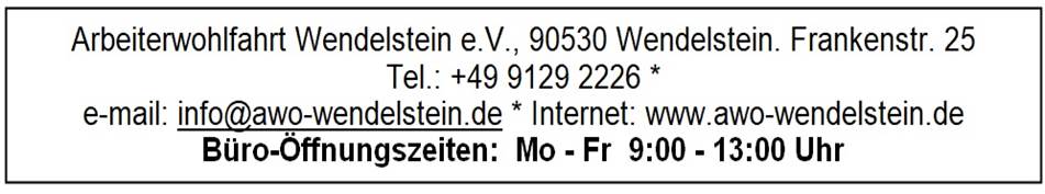Arbeiterwohlfahrt Ortsverband Wendelstein e. V. | Frankenstraße 25 | 90530 Wendelstein